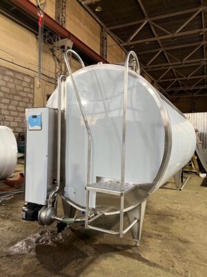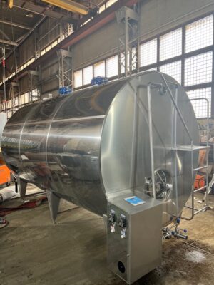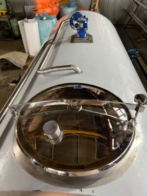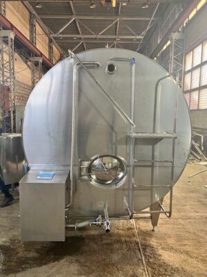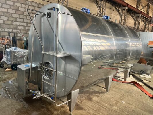 - Танк из нержавеющей стали на ножках с лестницей, люком, мешалкой, круглым вращающимся распылителем воды, панелью управления, гибким шлангом для холодной и горячей воды (2 х 4 м)